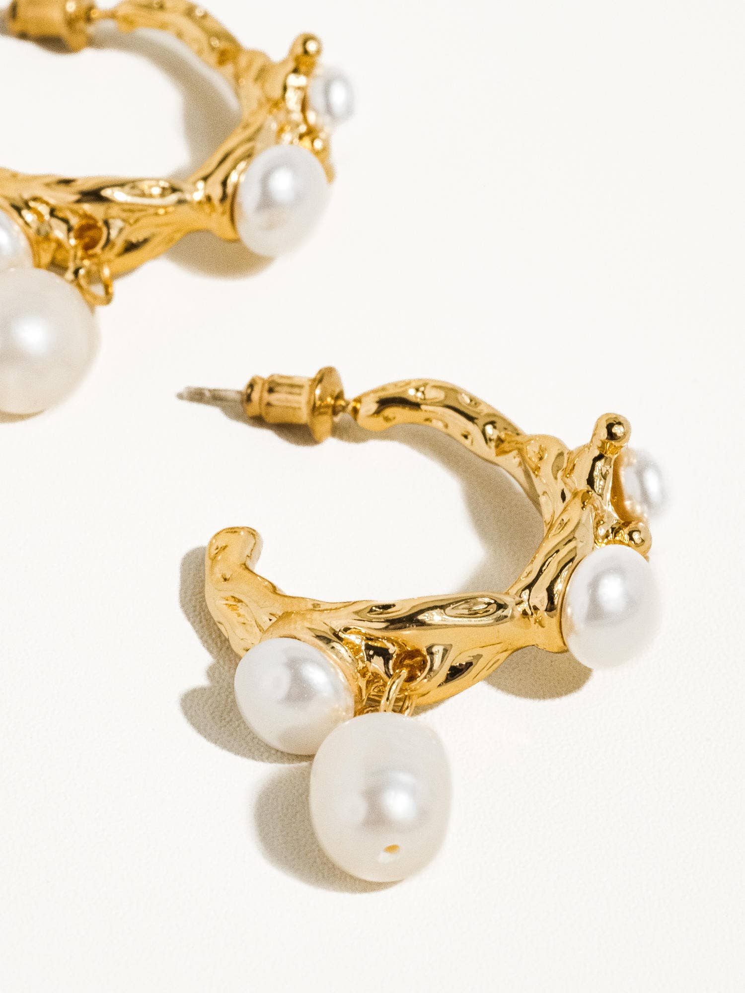 Materials & Measurements: 18K Gold Plated Faux Pearls, Stainless Steel and Sterling Silver. (L x W inch): 0.9 x 0.8 Please note: The earring needle is crafted from sterling silver with gold plating, imparting a soft characteristic. During transit, slight bending may occur. If needed, gently reshape it to its original form.